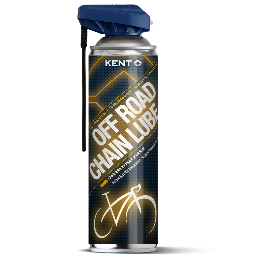Use o lubrificante de corrente KENT Off Road para a lubrificação geral da corrente e do cassete, especialmente em condições climáticas adversas e em trilhos fora de estrada